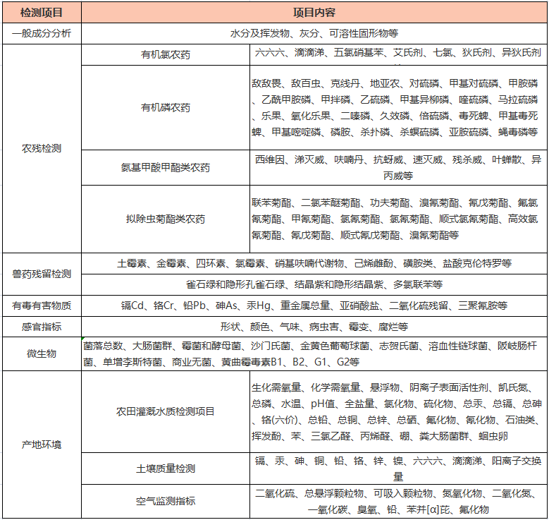 ● 無(wú)公害農(nóng)產(chǎn)品認(rèn)證檢測(cè)項(xiàng)目: